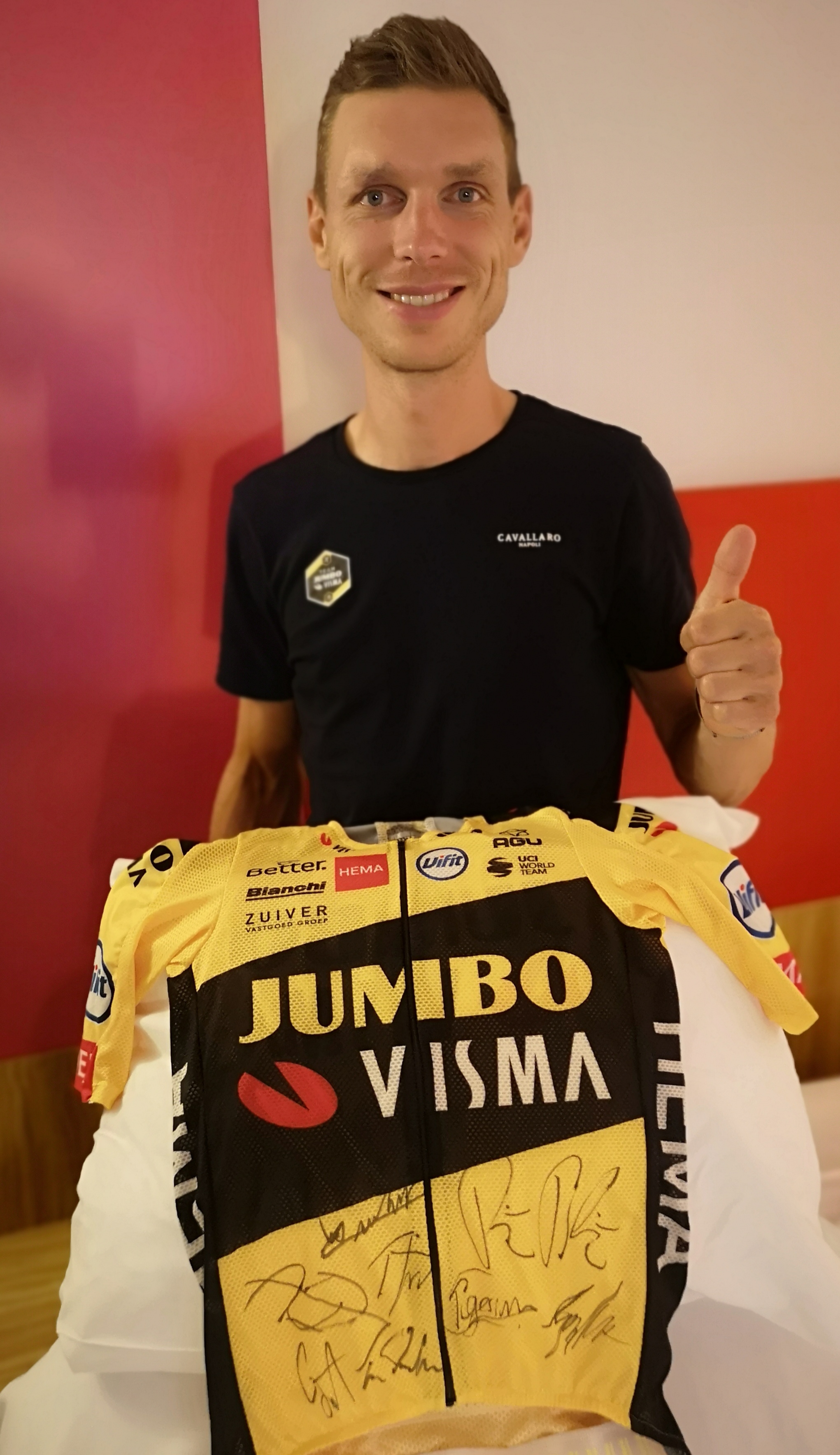 Rad-Sprintstar Pascal Ackermann stellt uns ein signiertes Giro d'Italia Sprinttrikots zur Verfügung, herzlichen Dank!