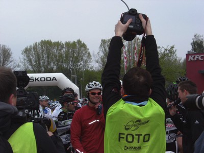 Bei der Benefizaktion im Jedermannrennen gab es schon vor dem Start reichlich Medienrummel um unseren Bärenherzstarter Thorsten Schröder.